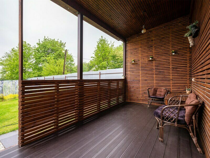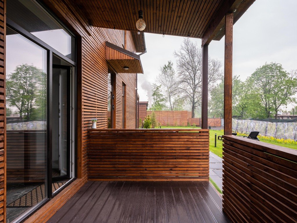Просторный коттедж с панорамным остеклением для комфортного размещения до 8 человек. Три спальни на втором этаже, большой раскладной диван на первом этаже, собственная веранда с видом на сад.