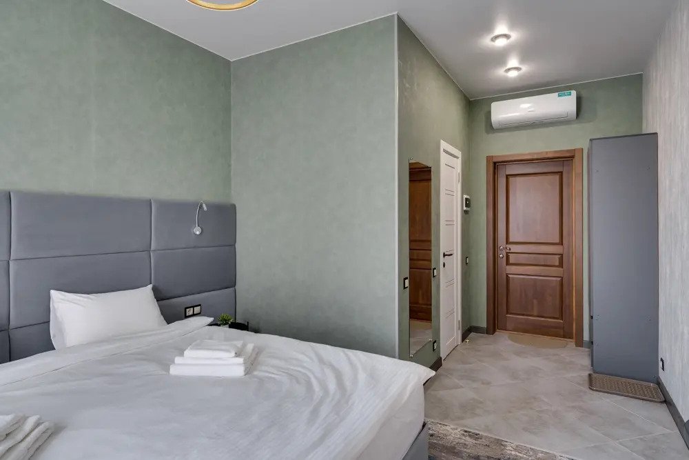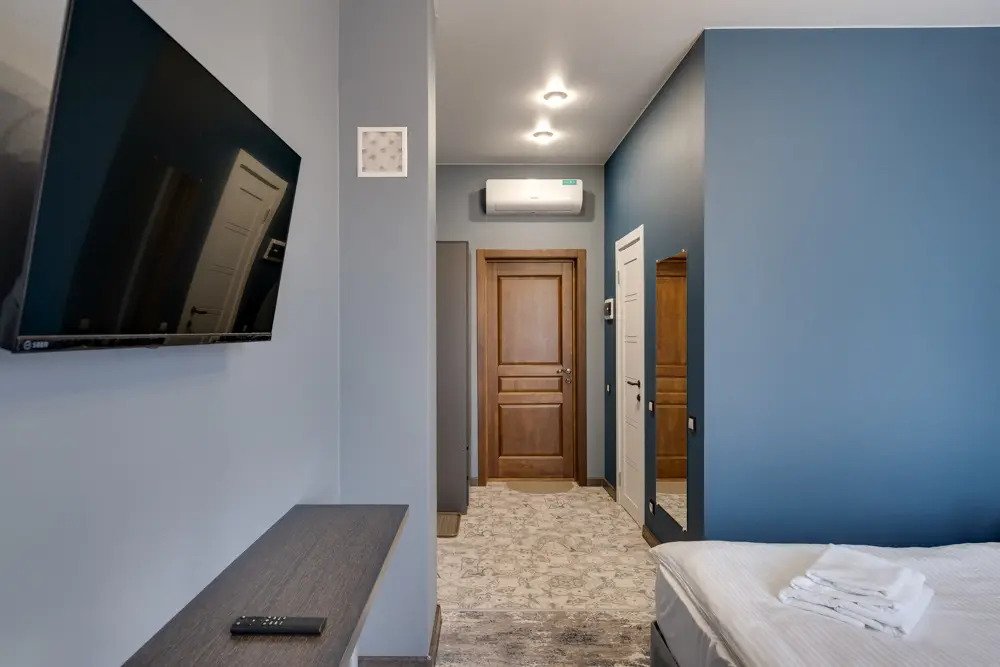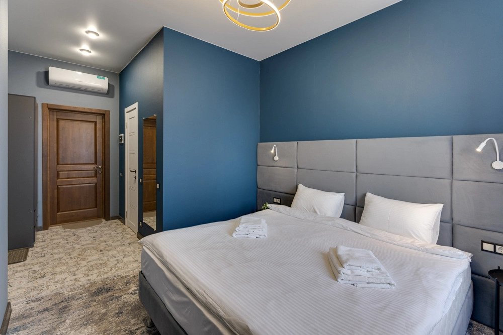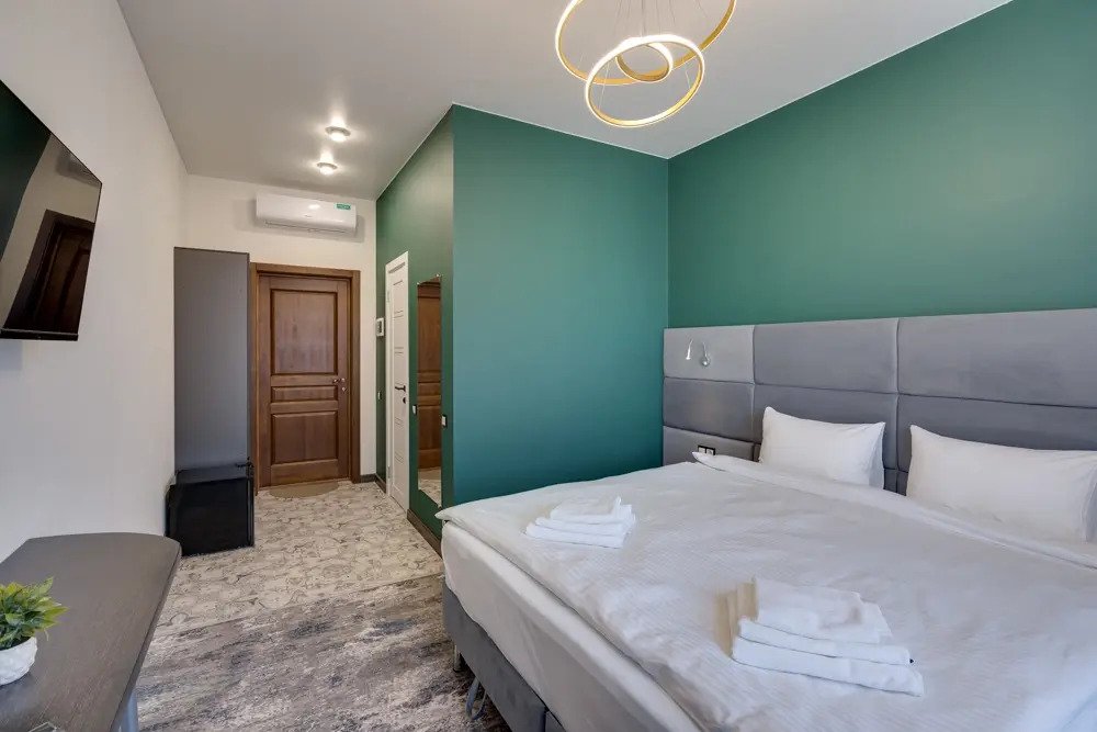 Просторный номер с двуспальной кроватью размера king-size или двумя раздельными кроватями, оборудованный индивидуальным санузлом с душем. В номере имеется кондиционер, мини-бар, телевизор с плоским экраном со спутниковыми каналами, рабочий стол со стульями, прикроватные столики, шкаф, журнальный столик, настенное зеркало, чайная станция с комплиментарными принадлежностями для приготовления чая . Ванная комната оснащена феном, комплектом полотенец, халатами, тапочками, одноразовыми косметическими и душевыми принадлежностями.
