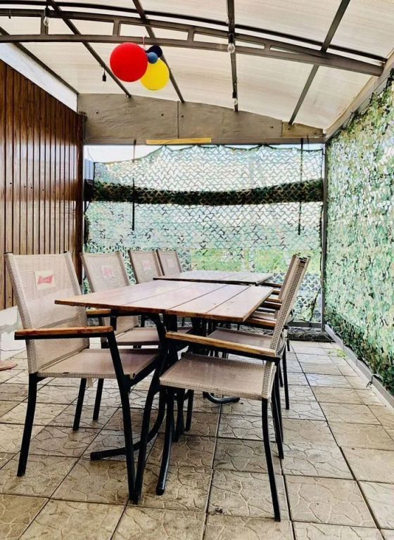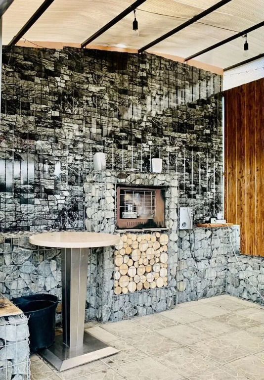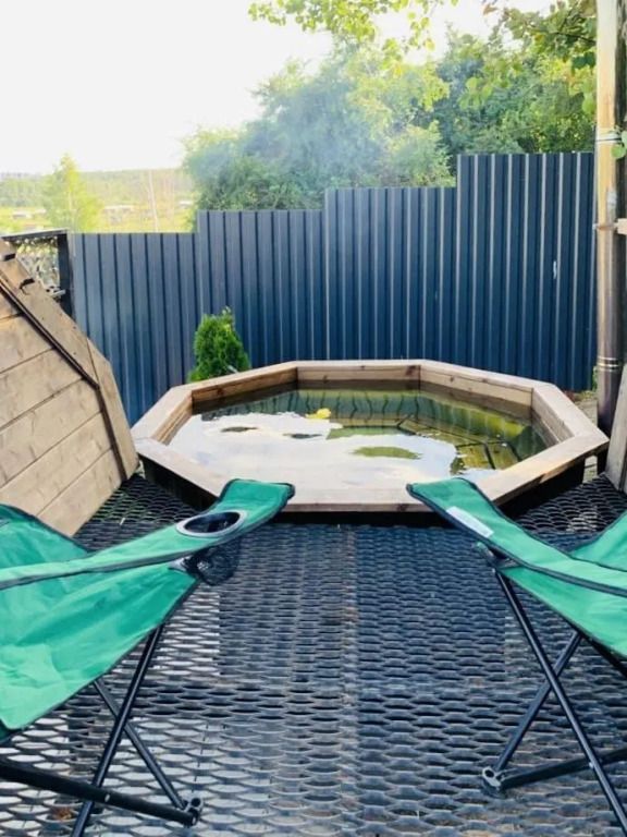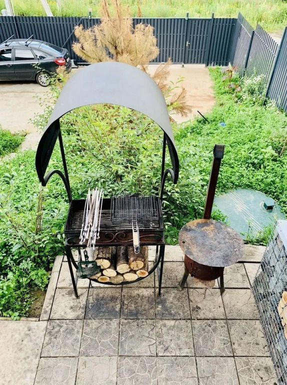 Участок имеет уклон, на котором сделано террасирование. На участке есть закрытая беседка с окнами из ПВХ, мангальная зона и парковка на 4 автомобиля. Гостям предоставляется казан и коптильня. На рыболовной усадьбе можно порыбачить или купить рыбу.