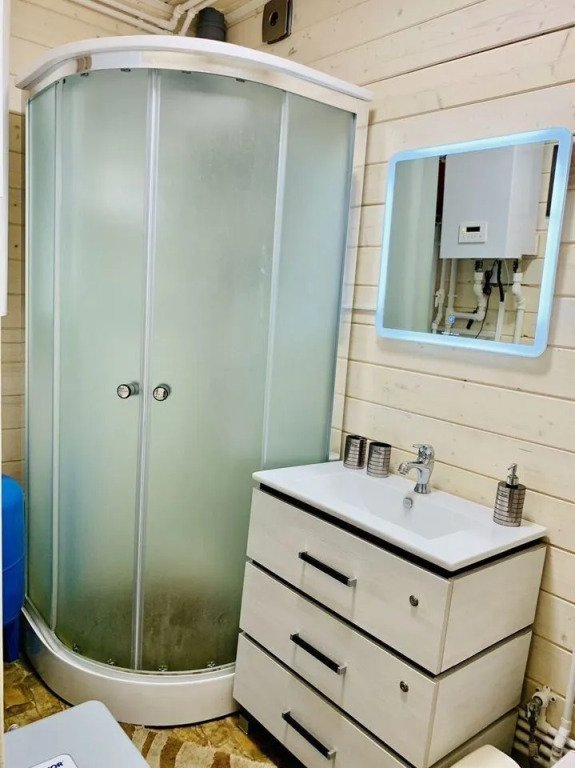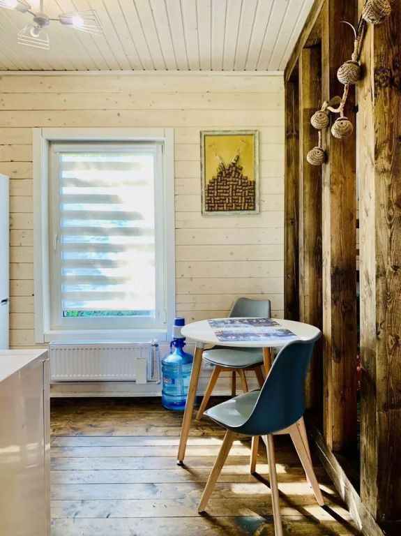 Предоставляется комплект постельного белья и полотенца. В ванной комнате установлена душевая кабина и унитаз. Вода поступает из артезианской скважины глубиной 35 метров. Отопление в доме электрическое. Окна выходят на «Рыболовную Усадьбу Остров».