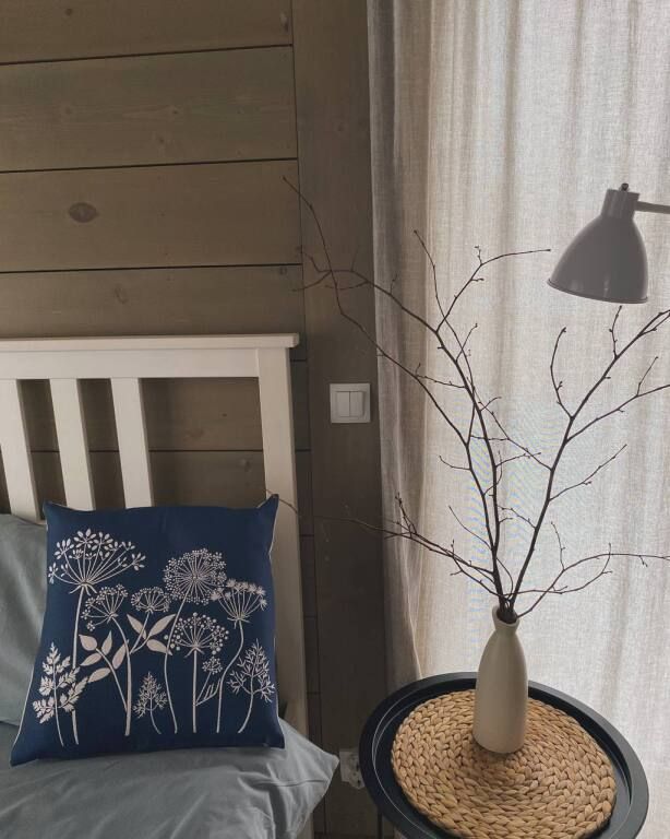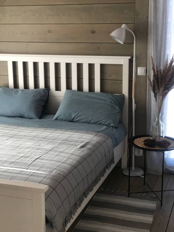 В доме две спальни, кухня-гостиная с печью-камином, веранда. Здесь могут разместиться от 2 до 5 гостей. Дом имеет панорамные окна.