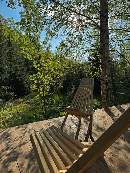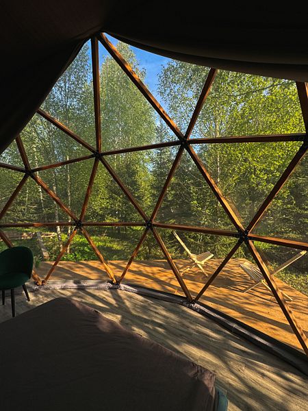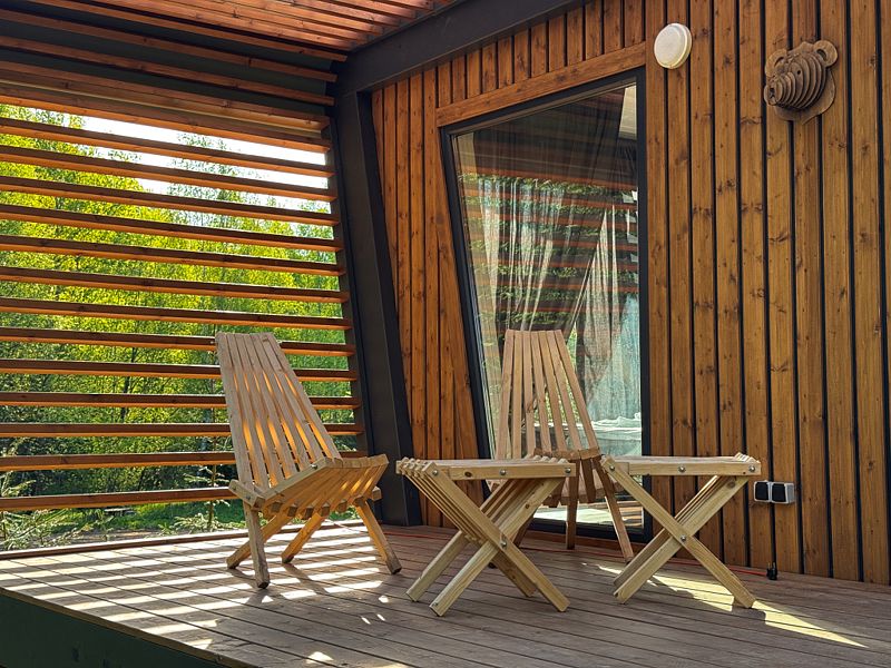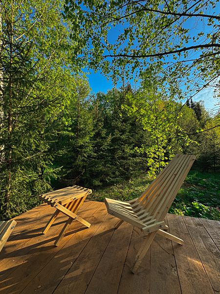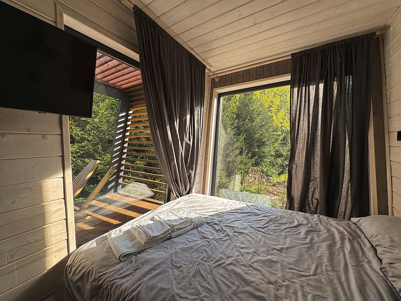 Семейный отдыхДостоинстваНаш семейный отдых удался на славу! Менеджер был очень отзывчивым и помогал нам освоиться на месте. Домики уютные и чистые, с потрясающим видом на лес. Муж оценил банный чан по достоинству, а мы с сыном провели чудесный день у водохранилища, до которого добрались на велосипеде (кстати, велосипеды предоставляются, что очень удобно). В общем, место идеальное для семейного или дружеского отдыха. Обязательно вернемся!