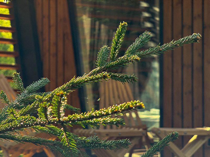 4-х местный коттедж с террасой, местом для мангала и видом на хвойный лес.