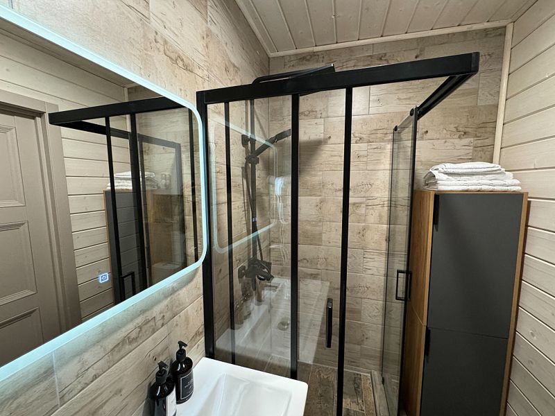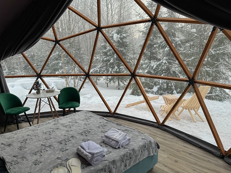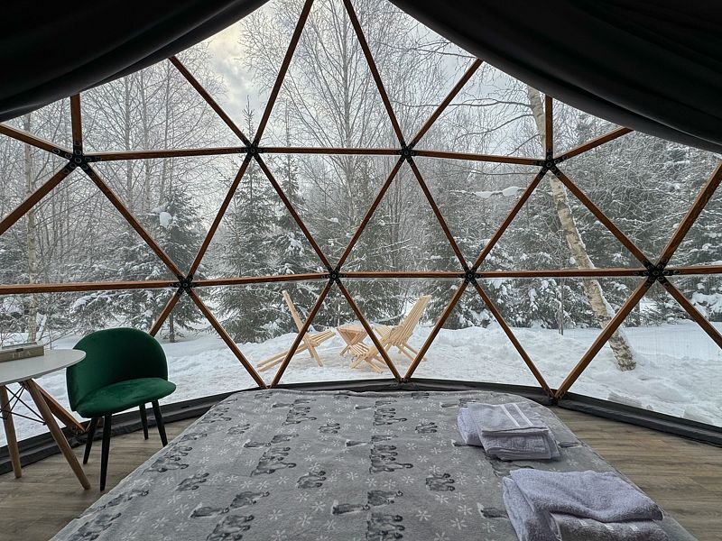 Имеется все необходимое для комфортного проживания. Уютные домики оснащены теплыми полами, обустроена обеденная зона и ванная комната. Вечер можно провести за просмотром фильма или выбрать понравившуюся настольную игру или книгу. На территории работает бесплатный Wi-Fi.