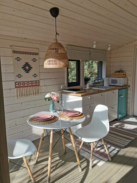 Гостям предлагаются два уютных варианта размещения: Дача Лес и Дача Поле. Оба домика оборудованы всем необходимым для вашего отдыха. Дачи построены с очень качественной, экологичной отделкой и стильным дизайном. Около каждого домика установлен сибирский банный чан на дровах. Неподалеку расположена уютная баня с панорамным окном на лес. Здесь вы можете насладиться чистым воздухом, пением птиц и живописными видами природы.