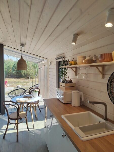Одноэтажный дом для 1-4 человек с отдельной спальней.
