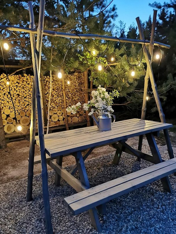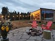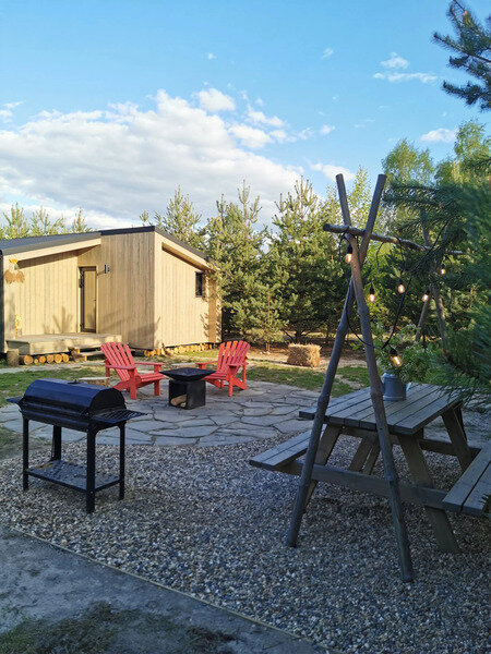 - своя костровая зона, зона барбекю с мангалом, стол с лавочками и подсветкой;