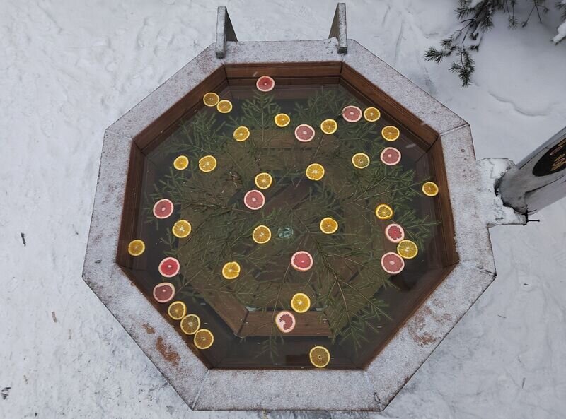 Еловые ветви и свежие цитрусовые превратят ваш чан в настоящее SPA. Украшение чана можно добавить при бронировании.