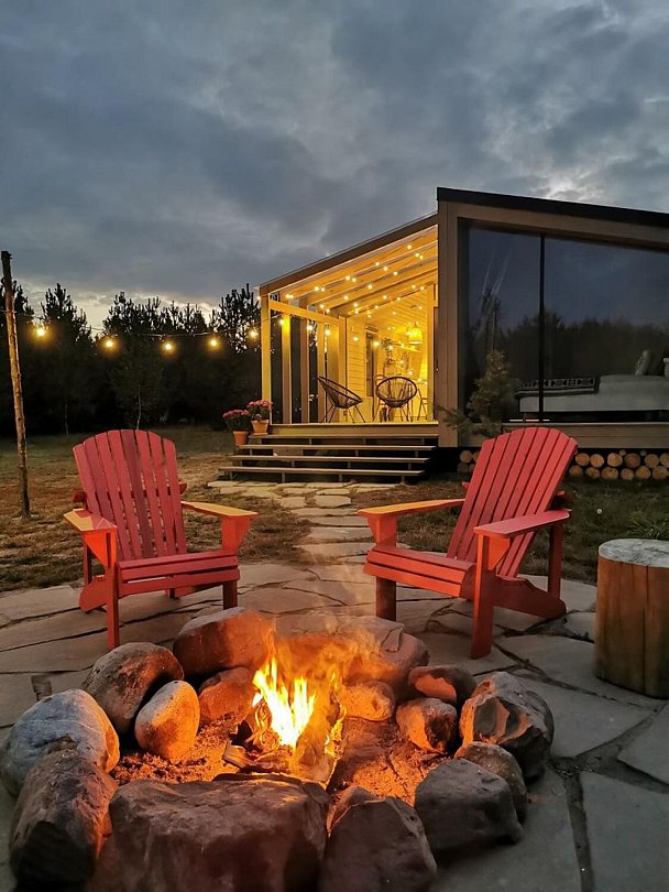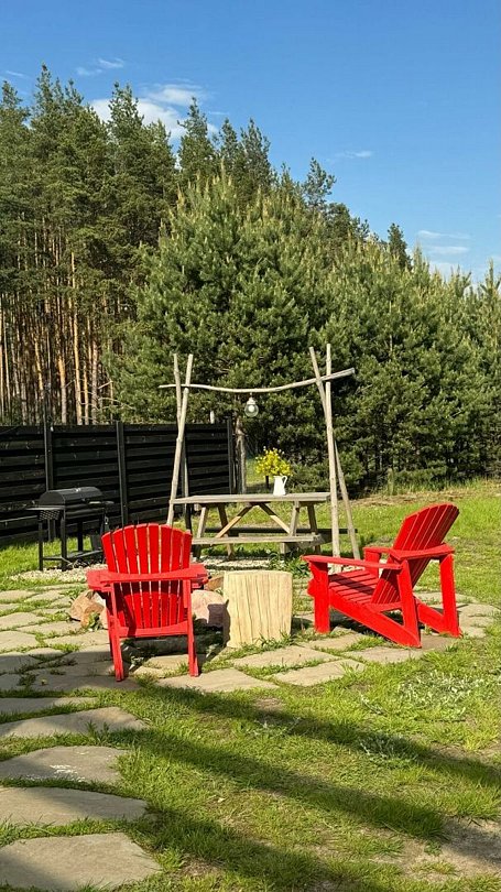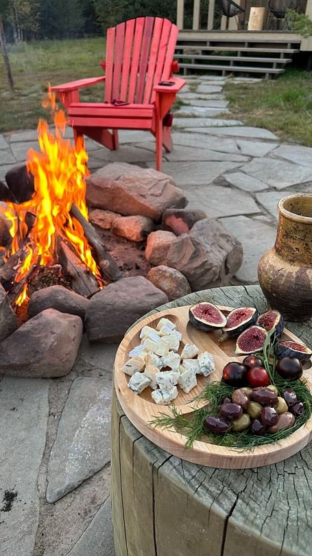 В костровой зоне дачи ЛЕС установлена стальная костровая чаша, на даче ПОЛЕ кострище оформлено диким камнем. Два кресла Адирондак идеальны для фотозоны. Предоставляется приветственная охапка дров и топор/колун для колки дров. Если планируются долгие посиделки у костра, захватите с собой дополнительно сухие дрова.