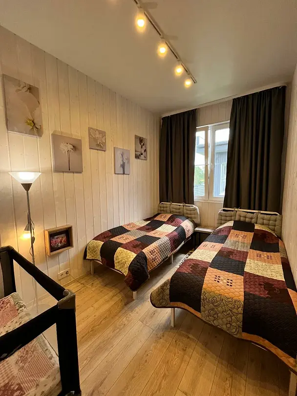 Две односпальные кровати, одна двуспальная кровать, одна диван-кровать, одна детская кроваткаВ доме