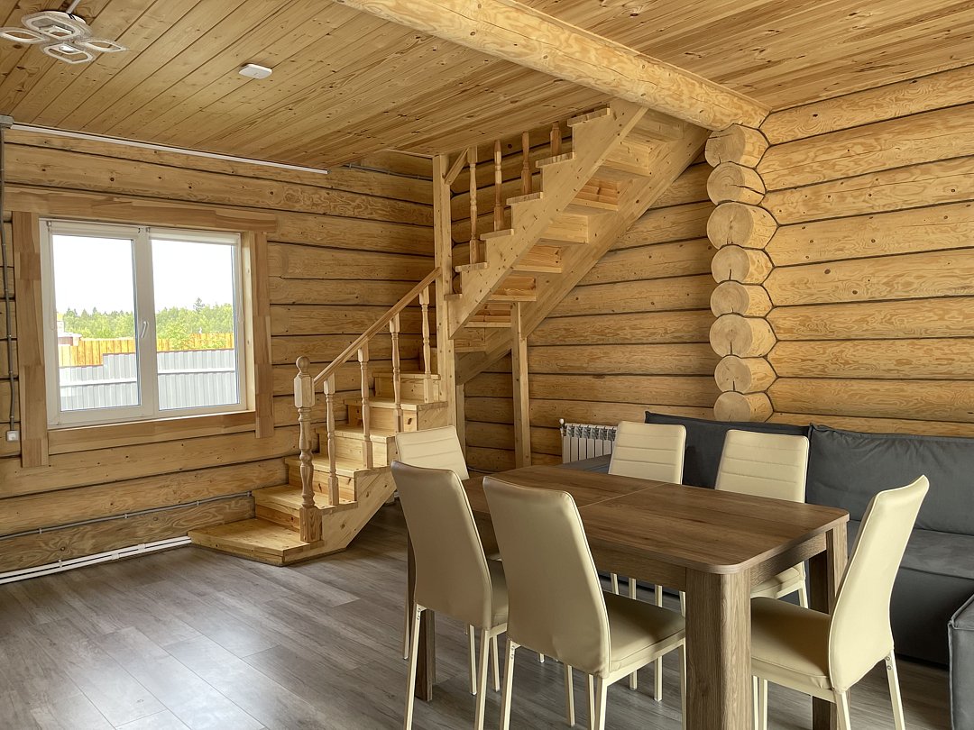 Дом новый, двухэтажный бревенчатый, полностью меблирован. Расположен вблизи леса. Полностью огорожен. На втором этаже две изолированные комнаты с просторной летней террасой. Санузел в доме. Оборудован всем необходимым для комфортного отдыха. Есть отдельная стационарная баня на дровах, на 6 человек.
