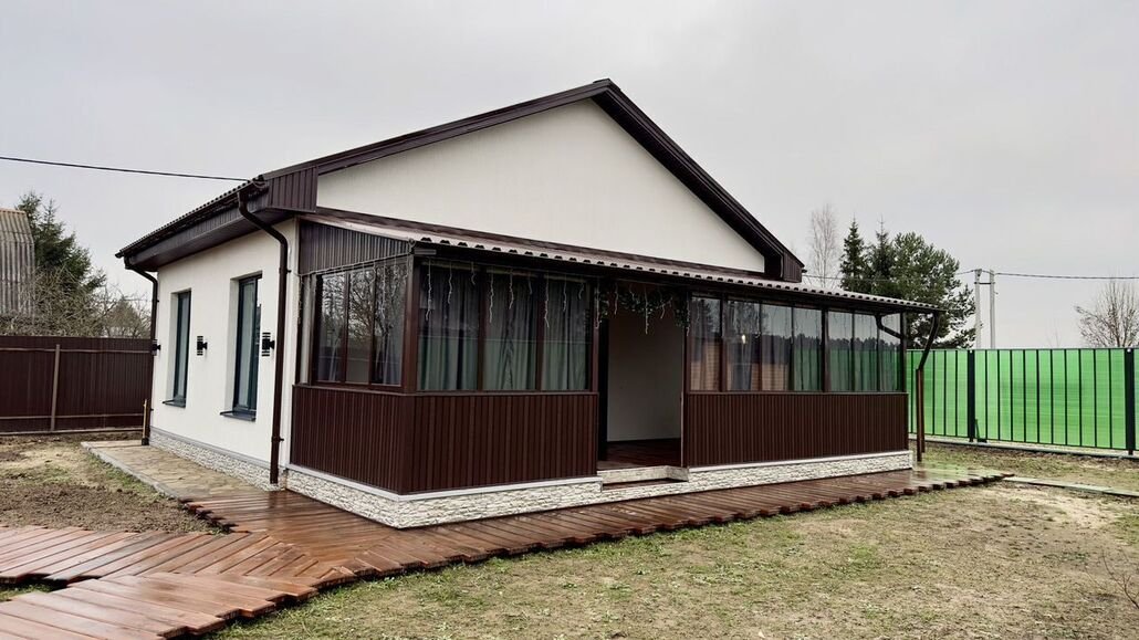 В доме две уютные спальни, просторная гостиная, совмещенная с кухней, и один санузел. Для комфортного проживания дом рассчитан на четыре человека, максимальное количество спальных мест — шесть.