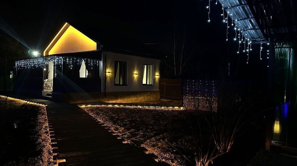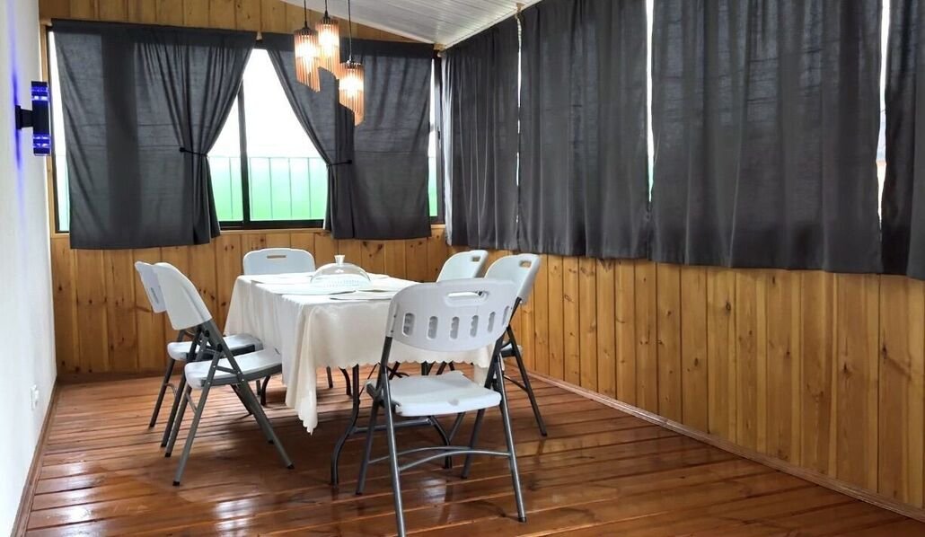 Гости могут воспользоваться как общими, так и приватными зонами: открытой беседкой и беседкой с мангалом для пикников, теплой закрытой банкетной комнатой с камином, телевизором и кондиционером, просторной верандой, летней кухней и крытой мангальной площадкой. Для удобства предусмотрена открытая и крытая парковка.