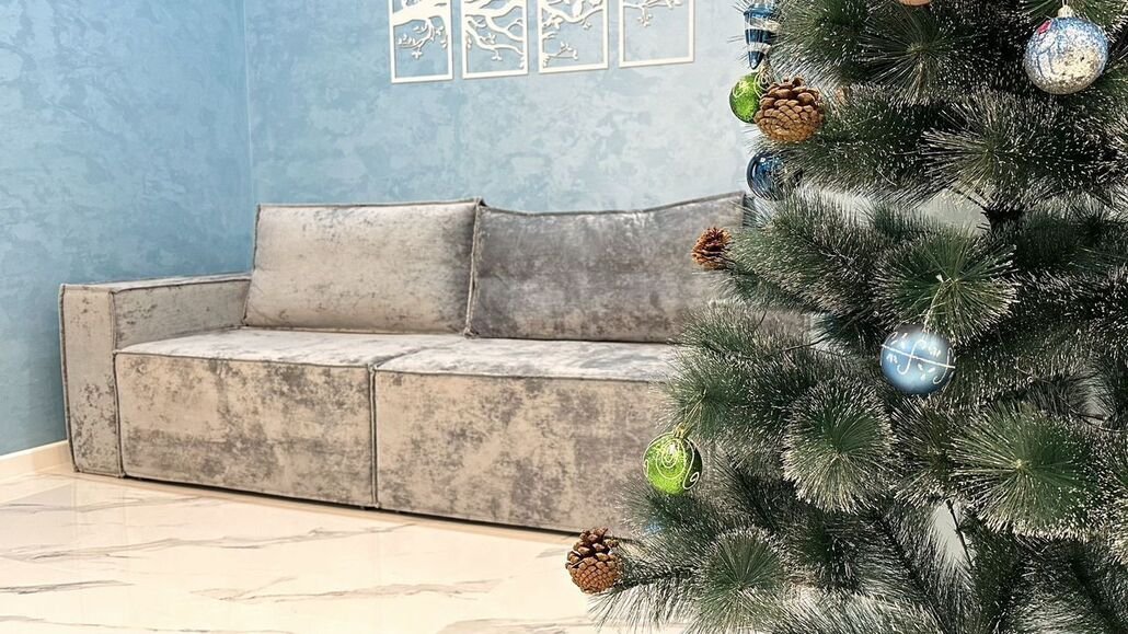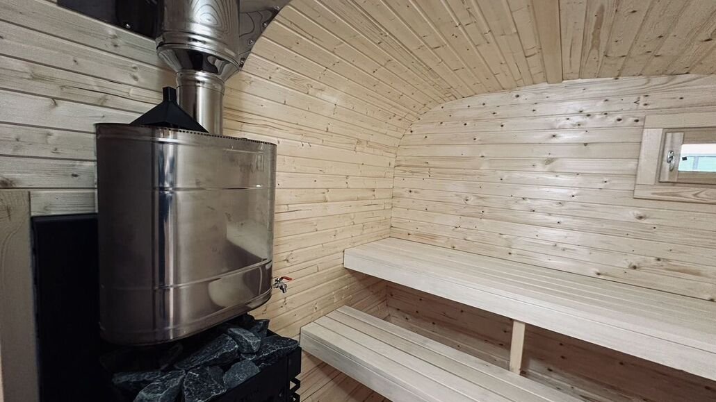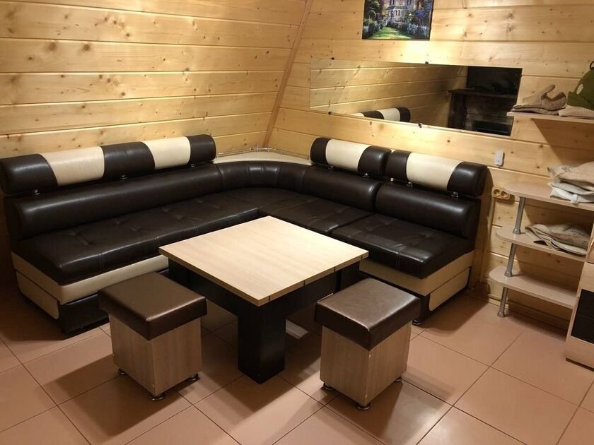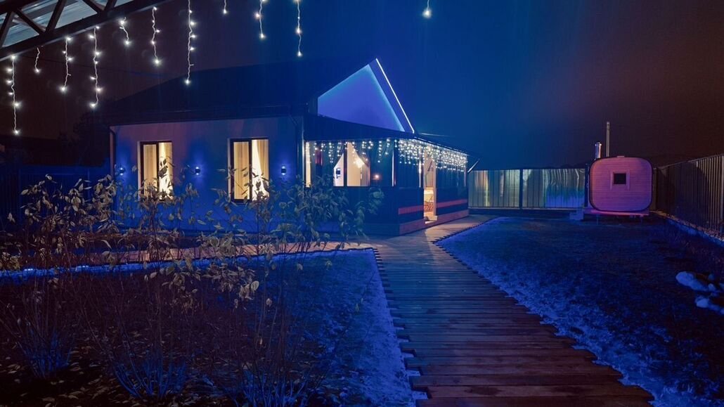В доме две уютные спальни, просторная гостиная совмещенная с кухней и один санузел. Для комфортного проживания дом рассчитан на четырех человек, максимальное количество спальных мест — шесть.