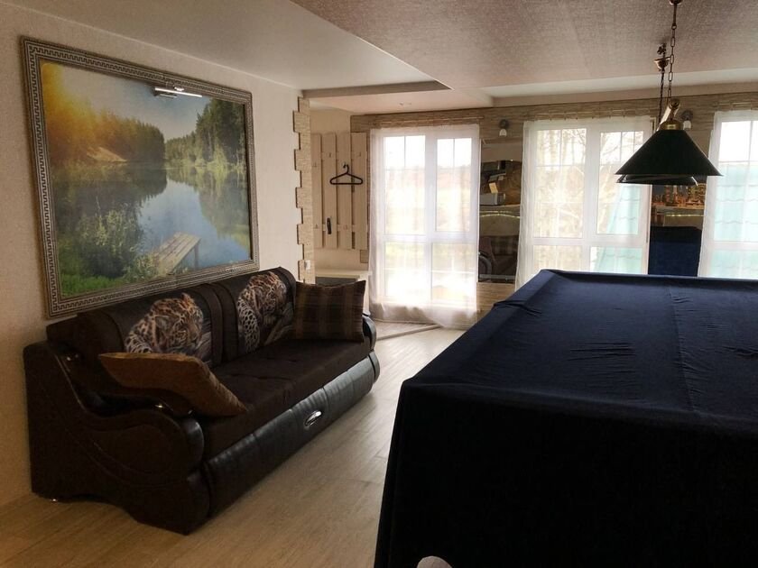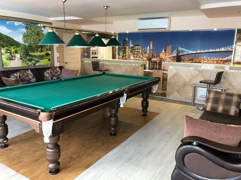 В доме есть все необходимое для комфортного проживания и отдыха: холодильник, микроволновая печь, варочная панель, электрочайник, посуда, кулер с питьевой водой, телевизоры в каждой комнате, кондиционер в гостиной, бильярдный стол, большая Bluetooth-колонка, постельное белье, полотенца, одноразовые тапочки, фен, средство для мытья посуды, мини-бар (платный).
