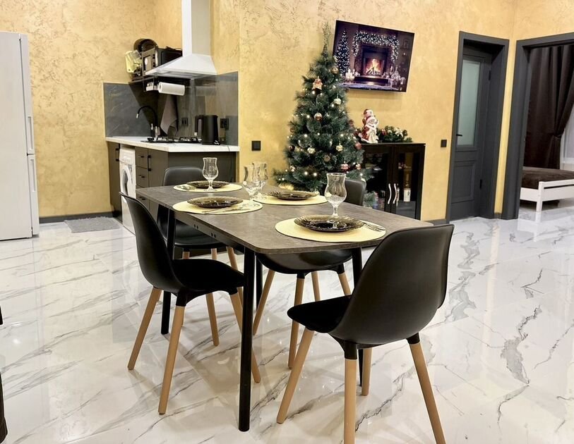 В доме есть все необходимое для комфортного проживания и отдыха: холодильник, микроволновая печь, варочная панель, электрочайник, посуда, стиральная машина, телевизоры в каждой комнате, постельное белье, полотенца, одноразовые тапочки, фен, средство для мытья посуды, мини-бар — платный.