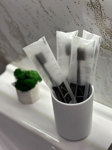 Гигиенические принадлежности: мыло для рук, гель для душа, шампунь, одноразовые зубные щетки с пастой, ватные диски, ватные палочки, прокладки.