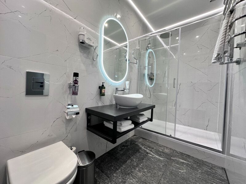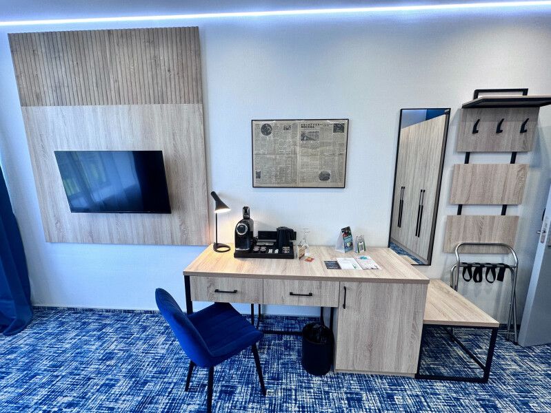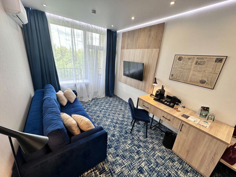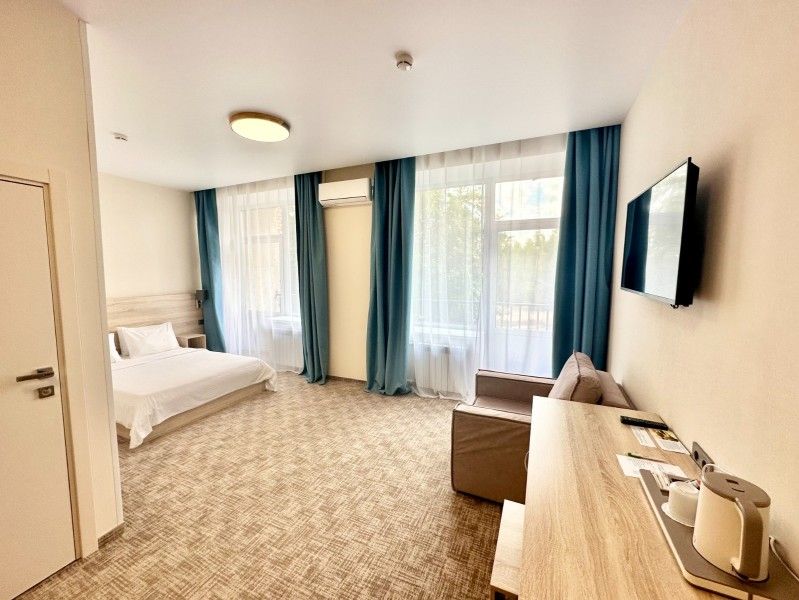 К размещению представлены комфортные номера со свежим ремонтом и необходимой мебелью. Среди удобств: плазменный телевизор, скоростной Wi-Fi, ванная комната, косметические средства, фен и место для хранения вещей.
