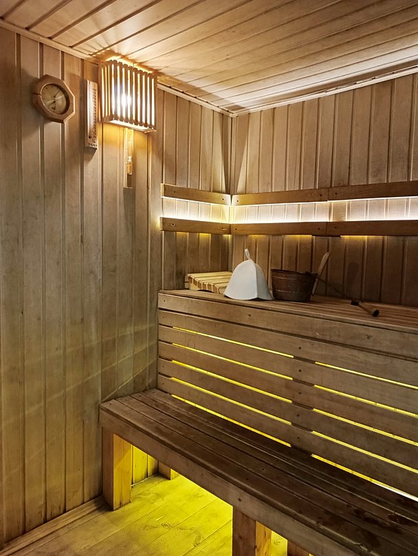 Для полного расслабления гостям доступна жаркая баня и чан, а летом — освежающий бассейн.