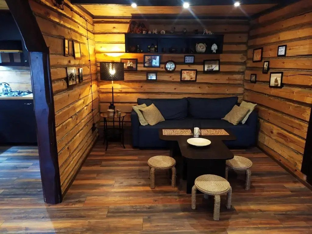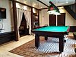 В доме 3 спальни на втором этаже. На первом этаже гостиная, каминная комната, бильярдная комната, смежные туалет и душевая. Для камина 1 связка дров предоставляется бесплатно, сверх этого за доп. плату.