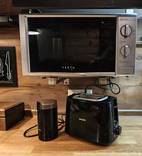 Стол на 8 человек + стол для готовки, есть рукомойник.