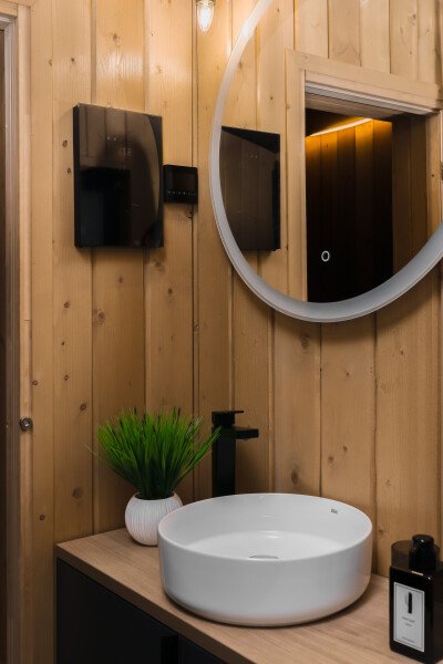 Для ценителей релаксации предусмотрена баня с несколькими режимами парения, где можно насладиться как традиционным русским паром, так и атмосферой финской сауны. Это идеальное место для восстановления сил и гармонии после активного дня на природе.