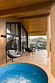 Гости могут расслабиться в подогреваемой купели с эффектом джакузи. Вода, нагретая до приятных 38 градусов, мягко подсвечивается, создавая идеальные условия для вечернего релакса.