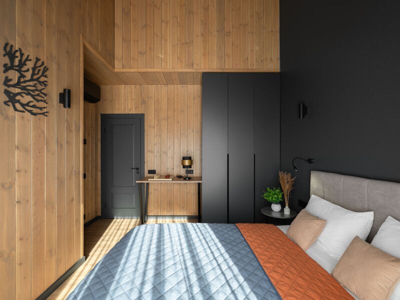 - Мастер-спальня с двуспальной кроватью 160х200.
