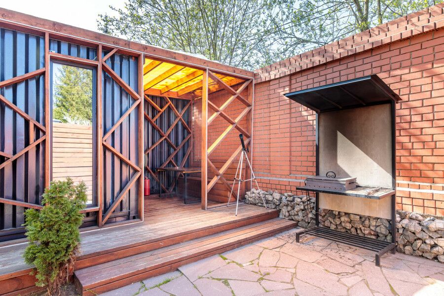 Вам нужно захватить с собой уголь и мясо. Все остальное оборудование для лучшего шашлыка на природе Вы найдете в доме.