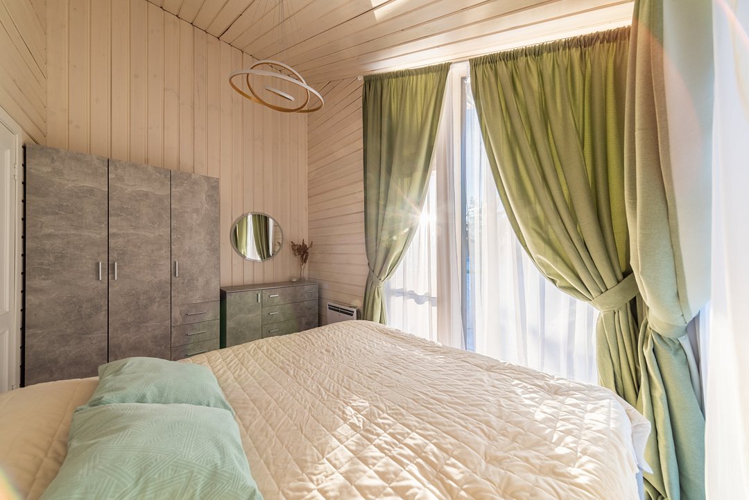 В дoме двe отдельные спальни с кроватями 160х200 и 180х200.