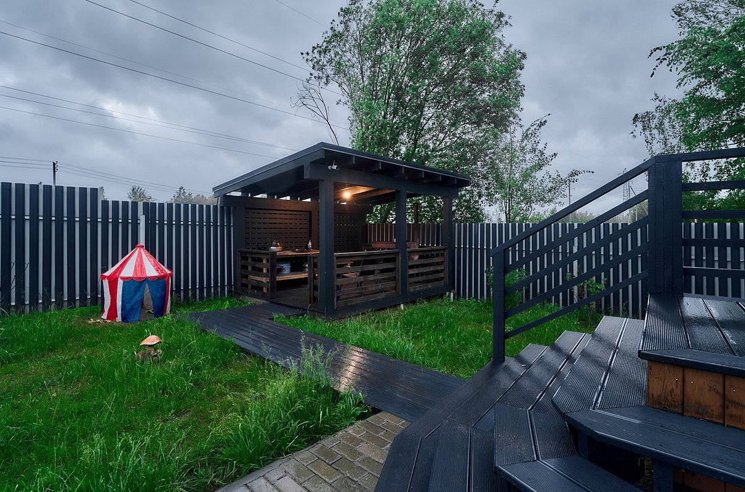 Неотъемлемой частью загородного отдыха станет еда, приготовленная на мангале. Для этого есть полностью оборудованная мангальная зона и обеденный стол со скамьями.