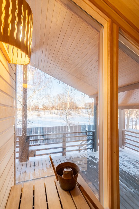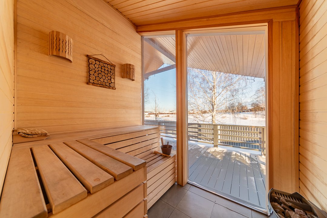 Приятным бонусом станет электрическая сауна с панорамным видом на озеро. Одна топка входит в стоимость проживания (час на разогрев и три часа парения).