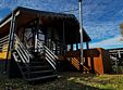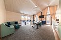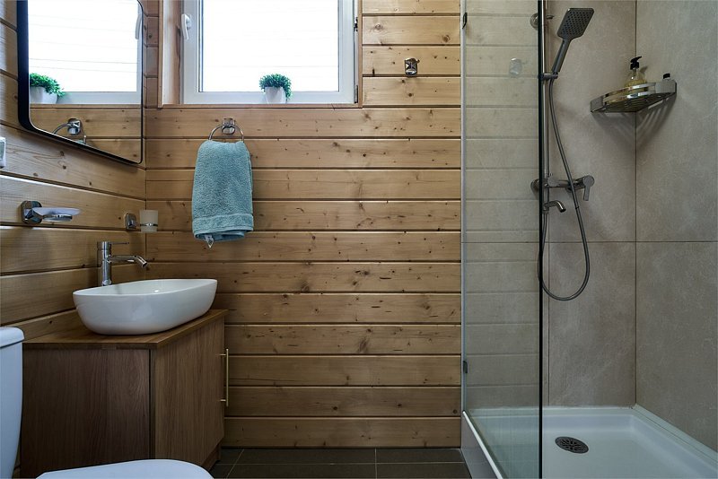 Внутри находится две отдельные спальни с кроватями, просторная кухня-гостиная с диваном и камином, укомплектованная всей необходимой техникой и посудой, а также посудомоечная машина.