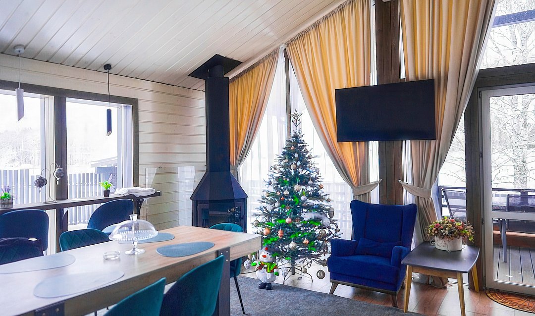 Погрузитесь в атмосферу домашнего уюта, разжигая камин по вечерам и наслаждаясь любимыми фильмами в компании друзей. Атмосферная терраса с уютными креслами, столиком и шезлонгами позволит провести вечера в комфортной обстановке.