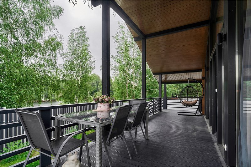 «Домик у Озера №1» — это уютный и стильный барнхаус с панорамными окнами, предлагающий потрясающий вид за озеро.