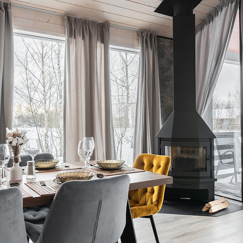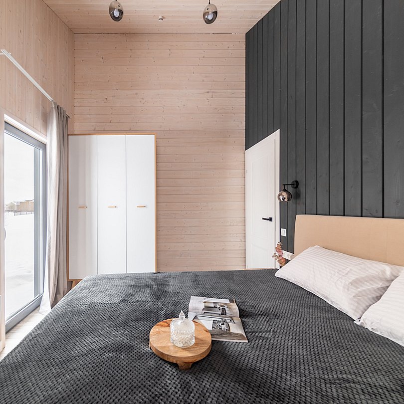 «Домик у Сорочан» — это стильный барнхаус с панорамными окнами, который станет ярким акцентом ваших фотографий и воспоминаний. Внутри вас ожидают две уютные спальни и функциональный кабинет с раскладным диваном. Просторная кухня-гостиная с камином и удобной зоной отдыха полностью укомплектована всем необходимым. Вы сможете проводить уютные вечера у камина, укутавшись в теплые пледы, и смотреть любимые фильмы в компании близких, ведь дрова предоставляются без дополнительных хлопот.