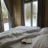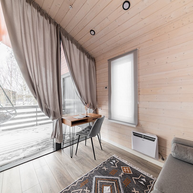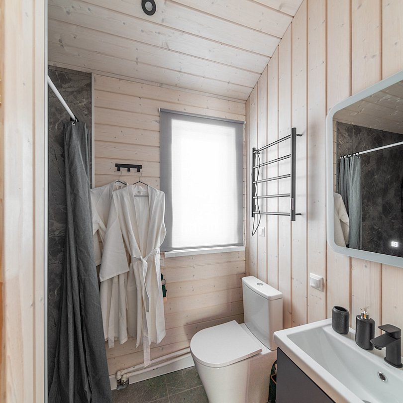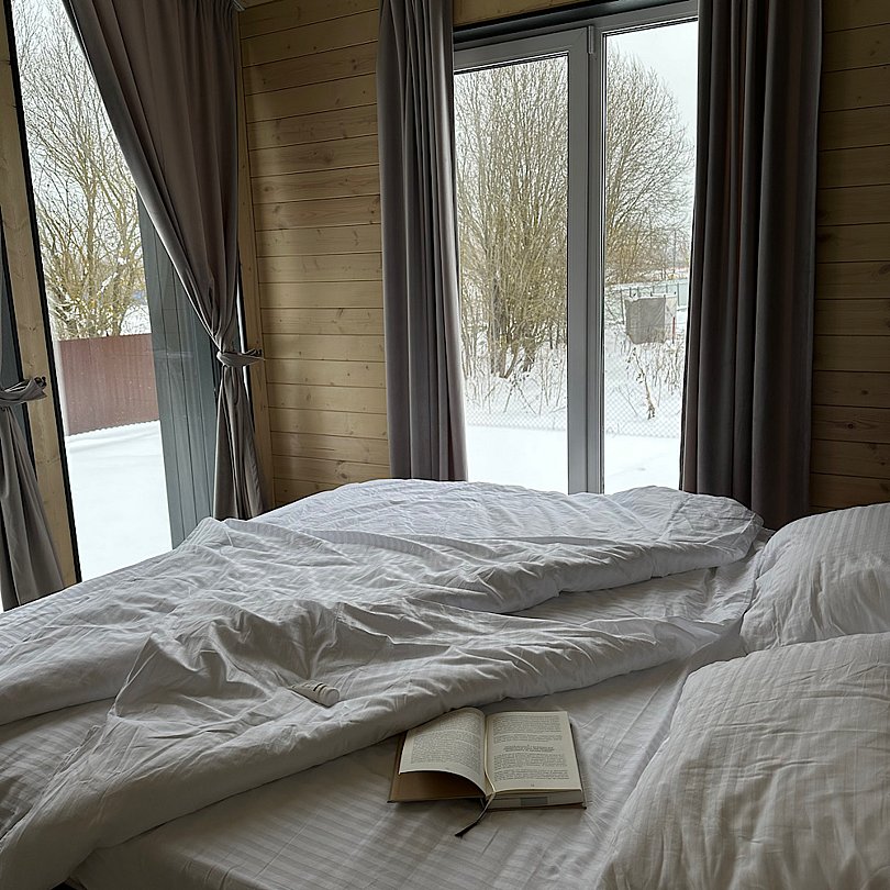 Ваш комфорт обеспечат ортопедические матрасы и качественное хлопковое постельное белье, окутывающее нежностью и уютом. Кроме того, вы можете расслабиться в небольшой электрической сауне — идеальное дополнение к загородному отдыху. Современный санузел с душевой кабиной, гигиеническими принадлежностями и полотенцами добавит удобства к вашему пребыванию.