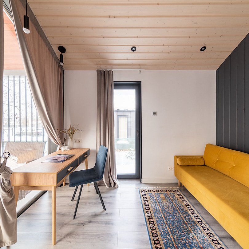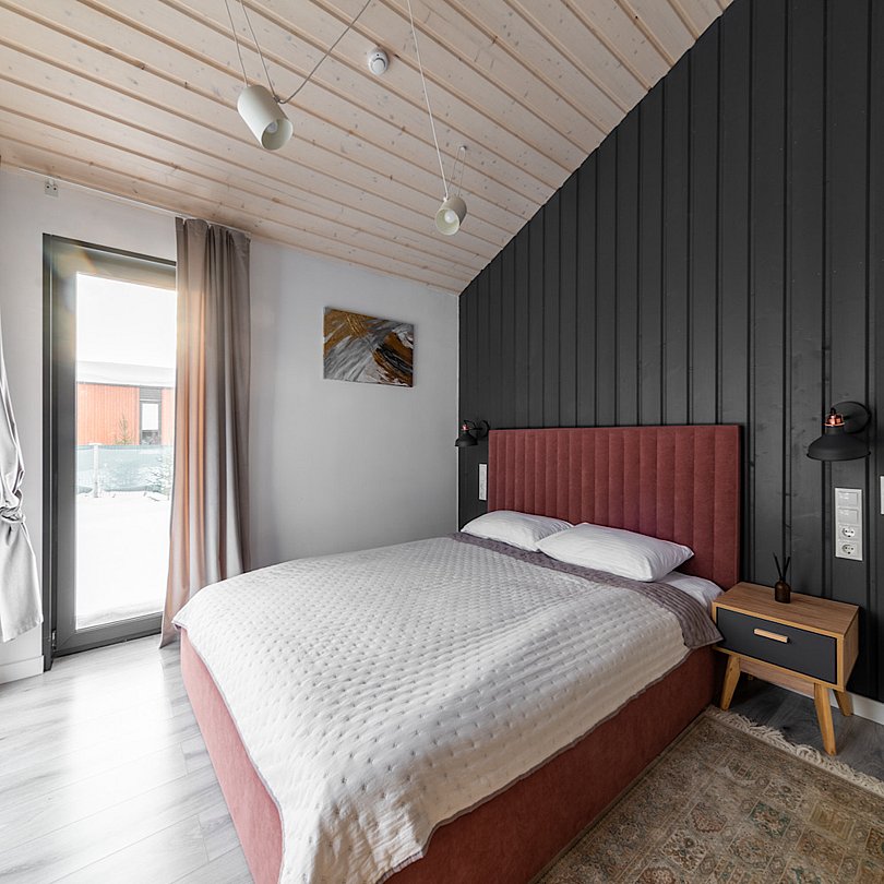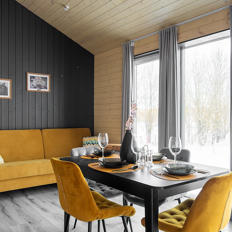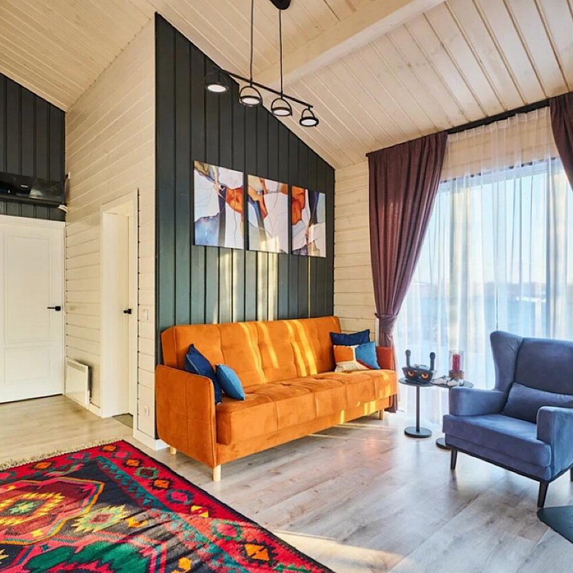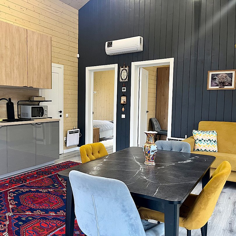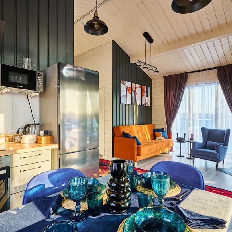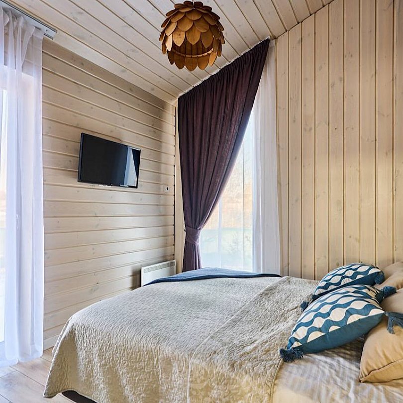 Для аренды доступы уютные домики с террасой, оборудованной кухней, мягкой мебелью, бытовой техникой и прочими удобствами. В некоторых домах также есть сауна.