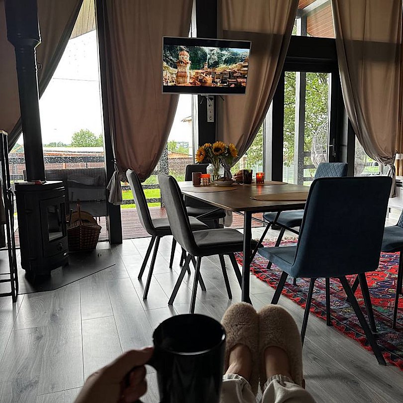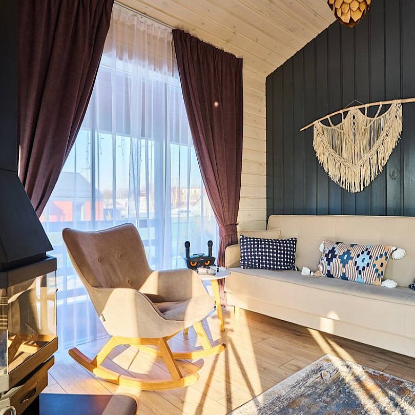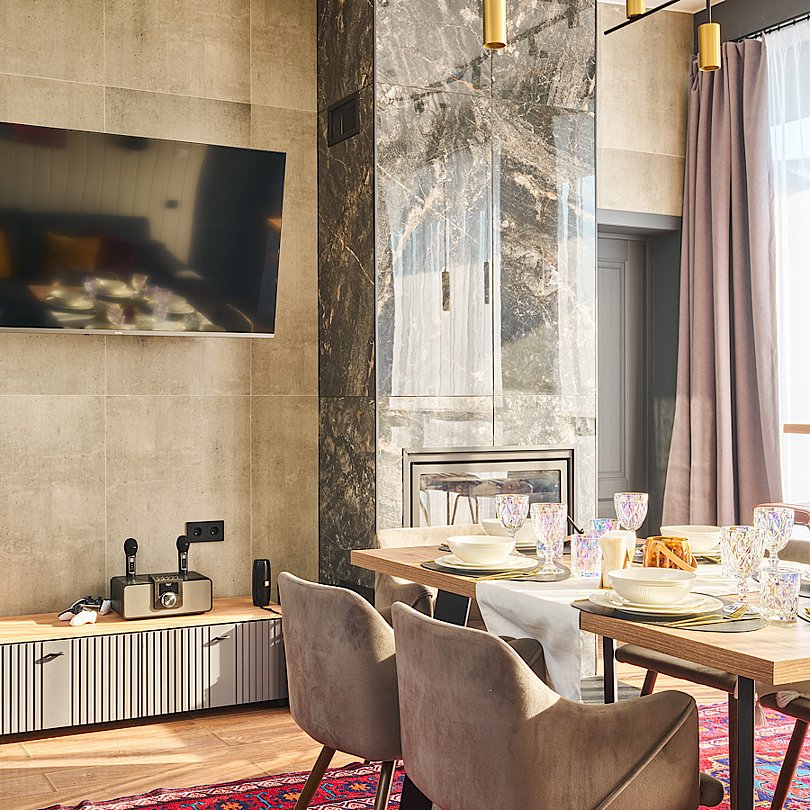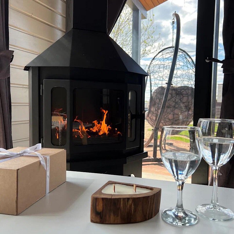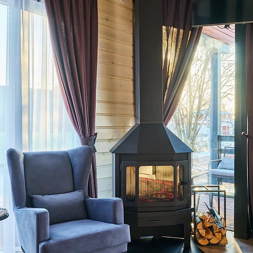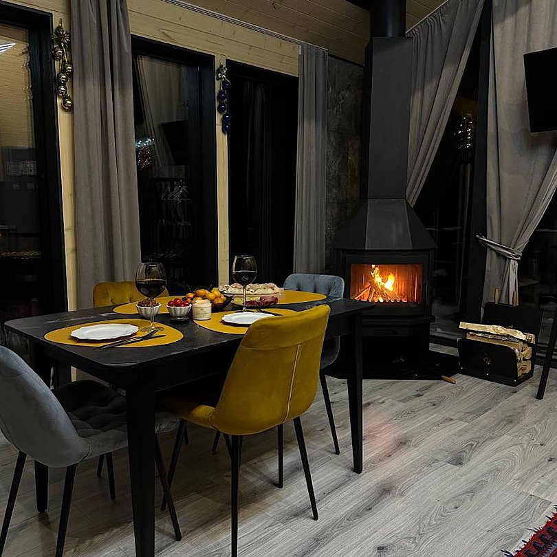 - для теплых романтических вечеров гостиная оборудована дровяным камином и телевизором со Smart-TV;