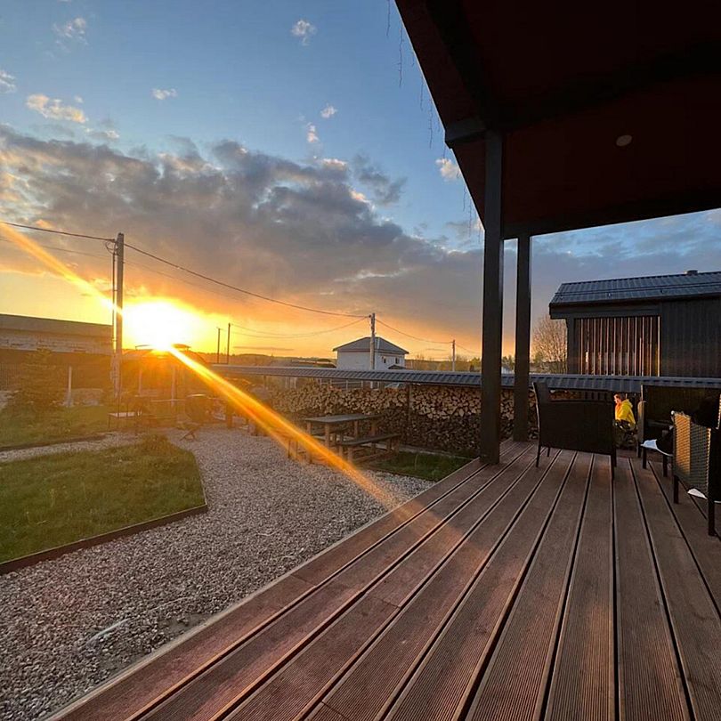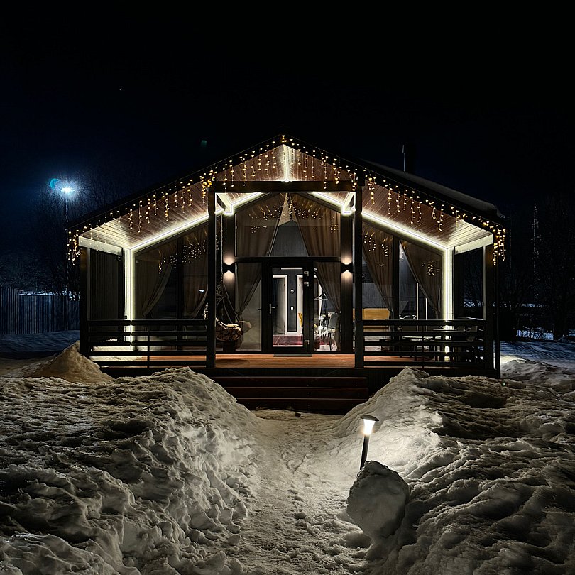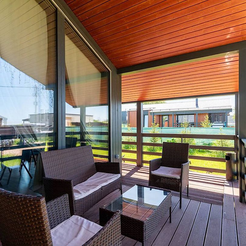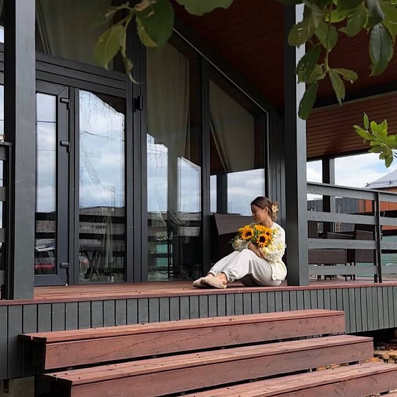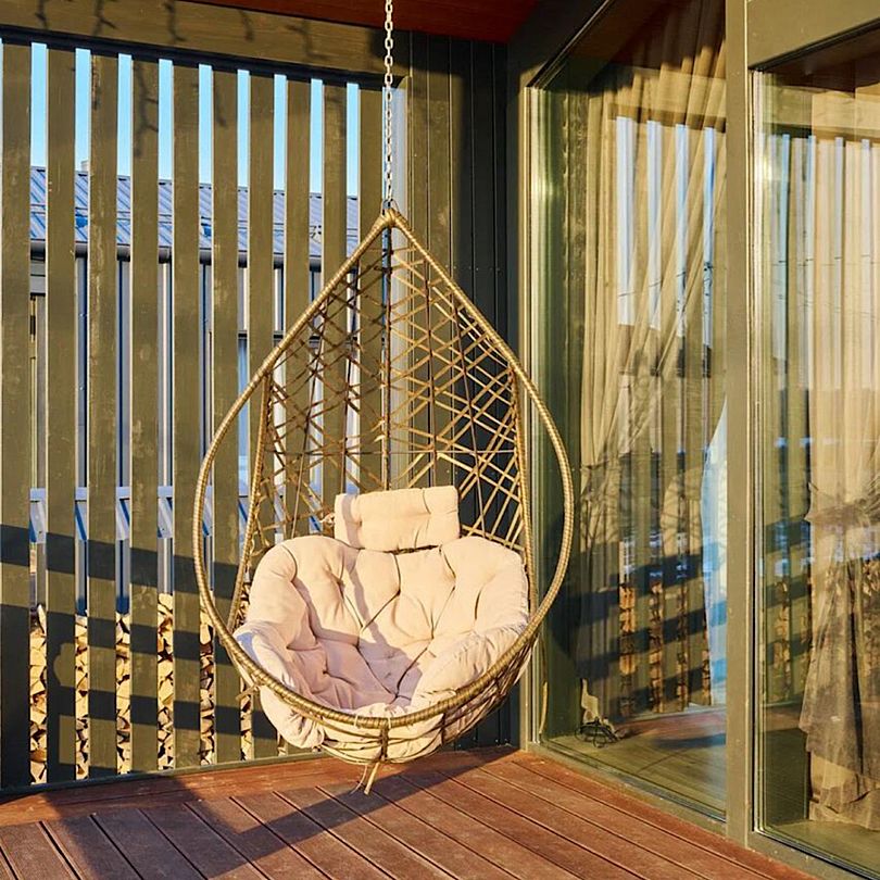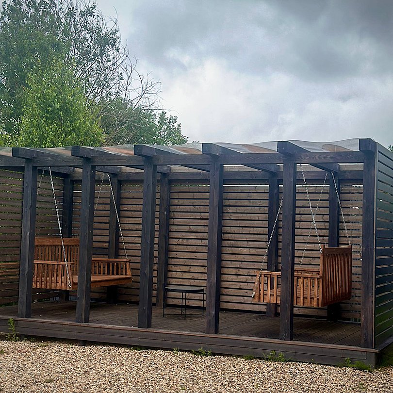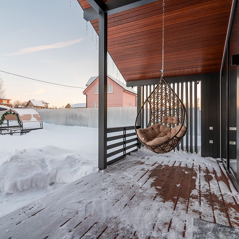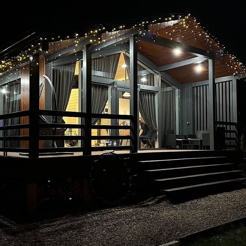 Завершить насыщенный день можно за увлекательной беседой, расположившись на крытой террасе с уютными креслами, навесным гамаком, столиком и приятной подсветкой.