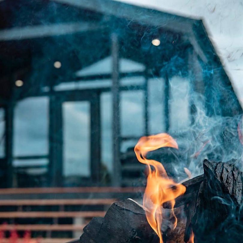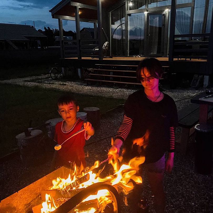Провожайте закаты, жарив шашлык на открытом воздухе и наслаждайтесь пением птиц, сидя у кострища в удобных креслах, попивая любимый напиток.