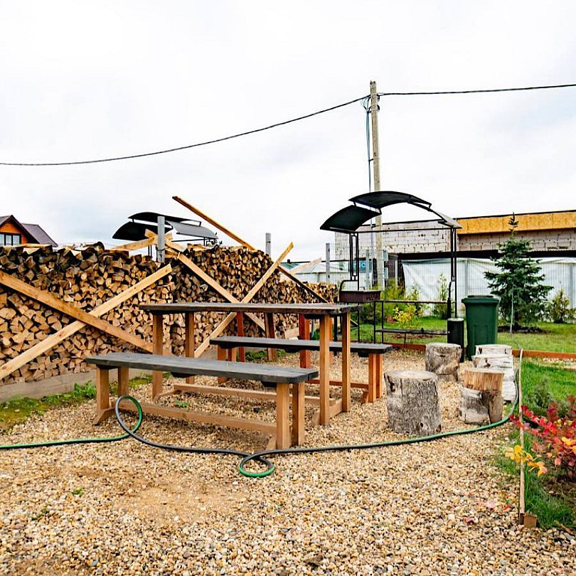 Также вы всегда можете пожарить шашлыки прямо на участке! Перед домом оборудована мангальная зона и обеденный стол со скамьями.