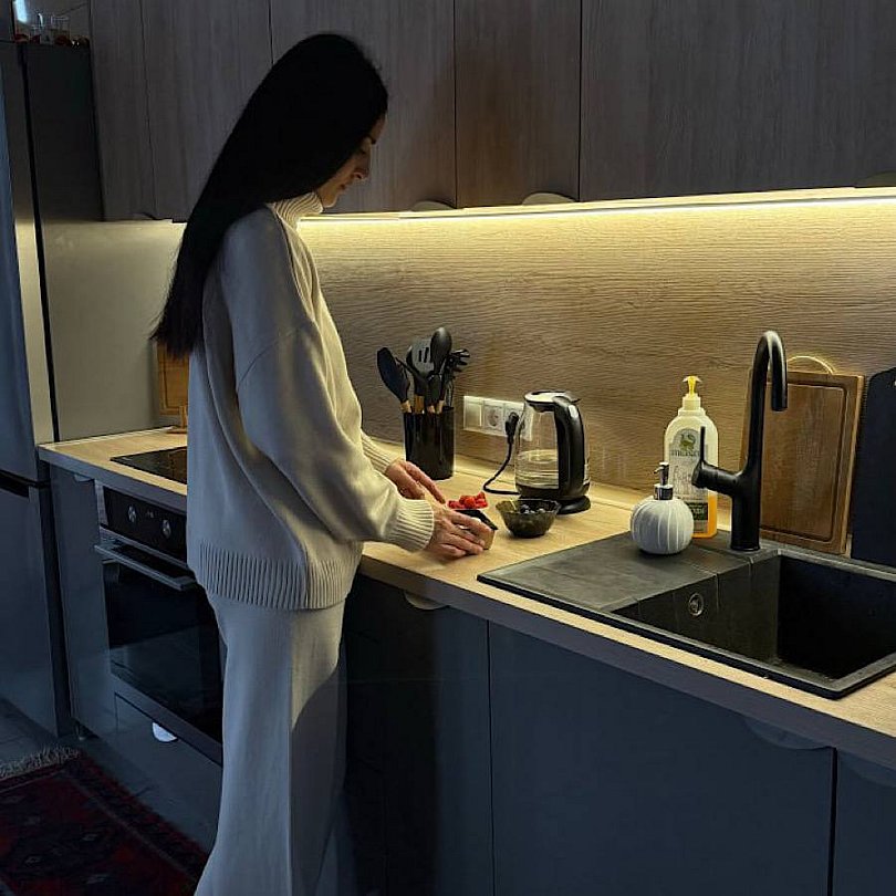 - полностью оборудованная кухня со всей необходимой бытовой техникой, посудой и столовыми; принадлежностями (от кастрюль и сковородок до вилок, ложек, бокалов и стопок);
