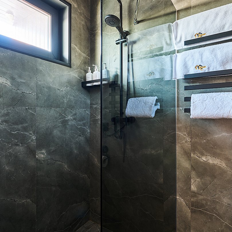 Санузел оборудован душевой кабиной, Гигиенические принадлежности, полотенца и халаты предоставляются.