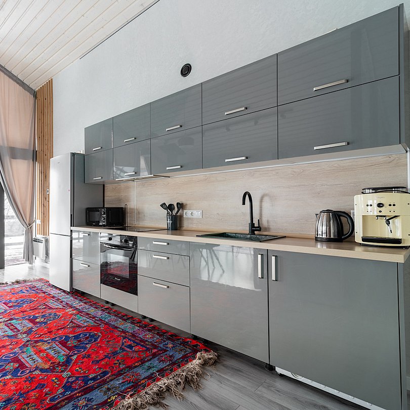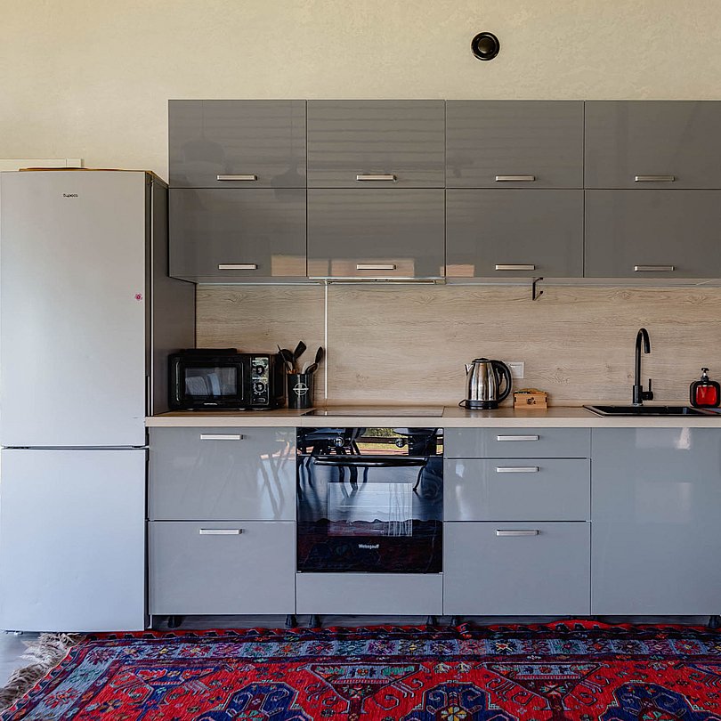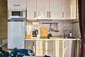 - полностью оборудованная кухня со всей необходимой бытовой техникой, посудой и столовыми принадлежностями (от кастрюль и сковородок до вилок, ложек, бокалов и стопок);