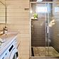 Внутри бани создана атмосфера спокойствия и комфорта. Стены украшены натуральным деревом, придающим интерьеру природную красоту. Открытые окна позволяют наслаждаться прекрасными видами природы и естественным освещением.