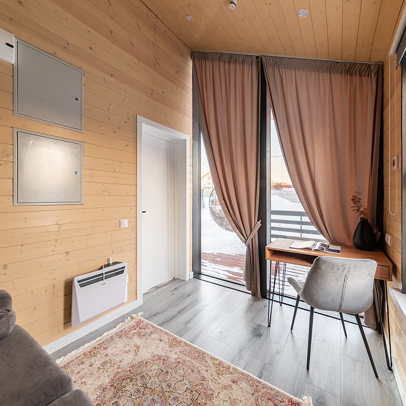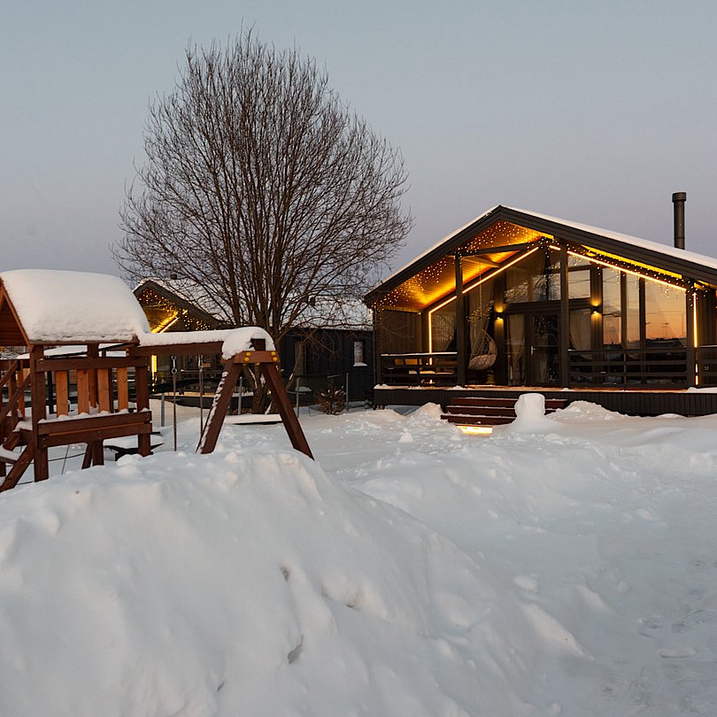 Семейный отдыхДостоинстваЧудесное атмосферное место, из которого не хочется уезжать. Провели в домике две ночи и два дня. Понравилось тепло и уют, наличие камина с достаточным количеством дров. Батареи работали хорошо. В бойлере есть горячая вода. На кухне тоже все, что может только понадобиться гостю. Холодильник огромный! Хватило места двум семьям спокойно.