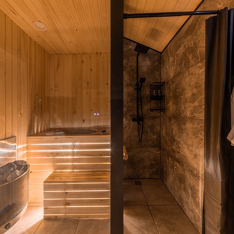 Приятным бонусом станет небольшая электрическая сауна, рассчитанная на 2-3 человека. Одно включение (3 часа) — бесплатно!