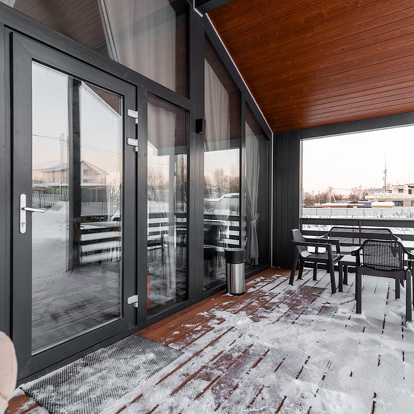 Вас ждет премиальный дом 130 м2 с панорамным остеклением и большой сауной для 4-8 гостей.
