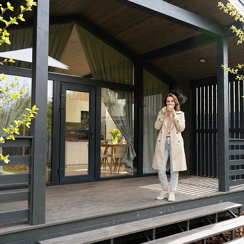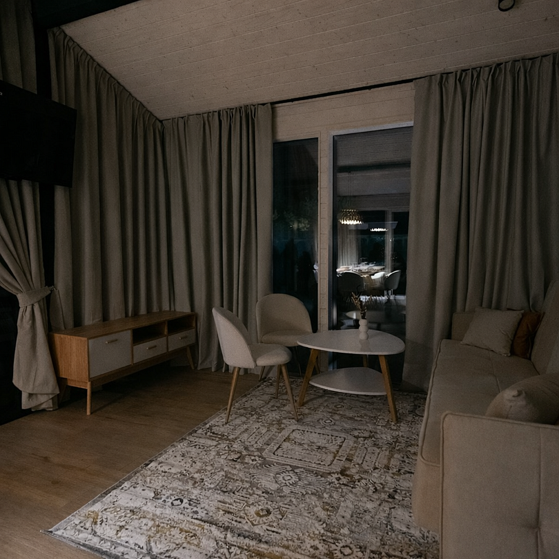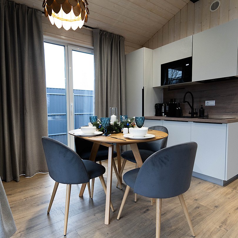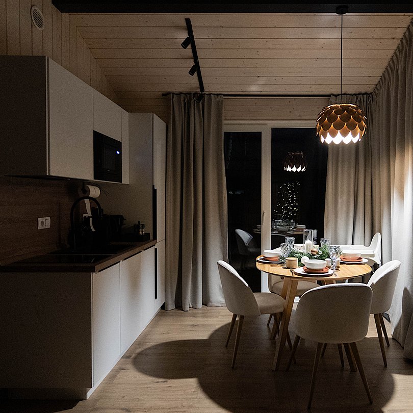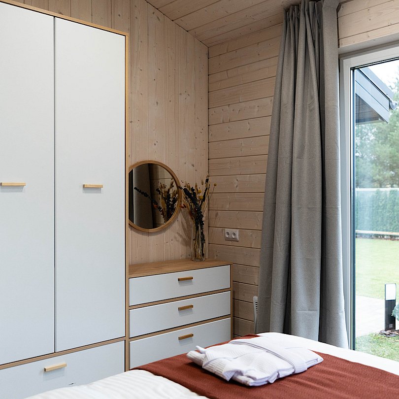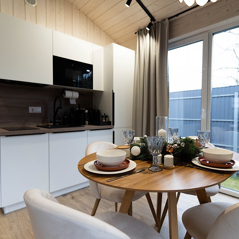 Новые дома с террасой и современным интерьером полностью оборудованы для комфортного проживания. В них есть 2 изолированные спальни; гостиная с раскладным диваном и Smart TV, кухня, оснащённая бытовой техникой и посудой, высокоскоростной Wi-Fi, санузел и стиральная машина, тёплые полы, умное отопление, кондиционер.